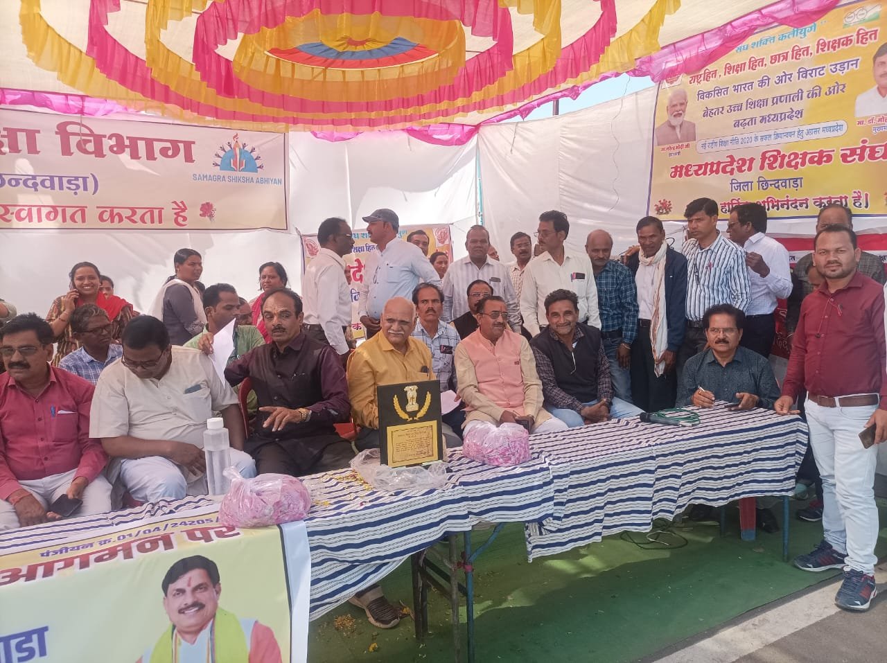 साथ ही संगठन ने शिक्षा विभाग में रोकी गई उच्च पद के प्रभार की प्रक्रिया को भी शीघ्र प्रारंभ कर शिक्षकों को लाभान्वित करने की बात कही संगठन द्वारा शिक्षकों को दी जाने वाली अर्जित अवकाश के नगदी कारण की प्रक्रिया को सरलीकृत कर सभी शिक्षकों को 2008 के बाद दिए जाने वाले अर्जित अवकाश तत्काल प्रदान करने की मांग की गई इस ज्ञापन के साथ ही जिला अध्यक्ष छिंदवाड़ा श्री तिवारी सचिव संजय नागदोने कोषाध्यक्ष श्री विकास डबली तथा छिंदवाड़ा विकास खंड के सभी शाखों के अध्यक्षों के द्वारा भी मुख्यमंत्री को ज्ञापन दिया गया साथ ही मध्य प्रदेश शिक्षक संघ ने प्रदेश के मुख्यमंत्री के प्रथम आगमन पर एक स्मृति चिन्ह भी भेंट किया इस अवसर पर जिला शिक्षा अधिकारी जी एस बघेल एवं छिंदवाड़ा जिले के सभी विकासखंड के शिक्षक उपस्थित होकर मुख्यमंत्री का स्वागत किया इसके साथ ही नवीन जिला पांढुरना में नवीन कार्यकारिणी के गठन हेतु शंकर राव जुमरे को जिला संयोजक तथा अमोल बोबडे को जिला सहसंयोजक का दायित्व भी सोपा गया तथा उन्हें निर्देशित किया गया कि वे पांढुर्णा जिले की नवीन विकासखंड तहसील तथा नगर इकाइयों को मजबूत कर उसके निर्वाचन की प्रक्रिया प्रांतीय कार्यकारिणी द्वारा दिए गए निर्देश के अनुसार पूर्ण कर नवीन जिले का गठन की कार्यवाही पूर्ण करें अंत में संभागीय अध्यक्ष विजय शुक्ला सह संगठन मंत्री नंदकुमार शुक्ला तथा जिला अध्यक्ष शशि तिवारी ने जिले से आए सभी शिक्षकों के प्रति आभार व्यक्त किया तथा समय-समय पर संगठन को इसी प्रकार सहयोग प्रदान करने की अपेक्षा व्यक्त की।