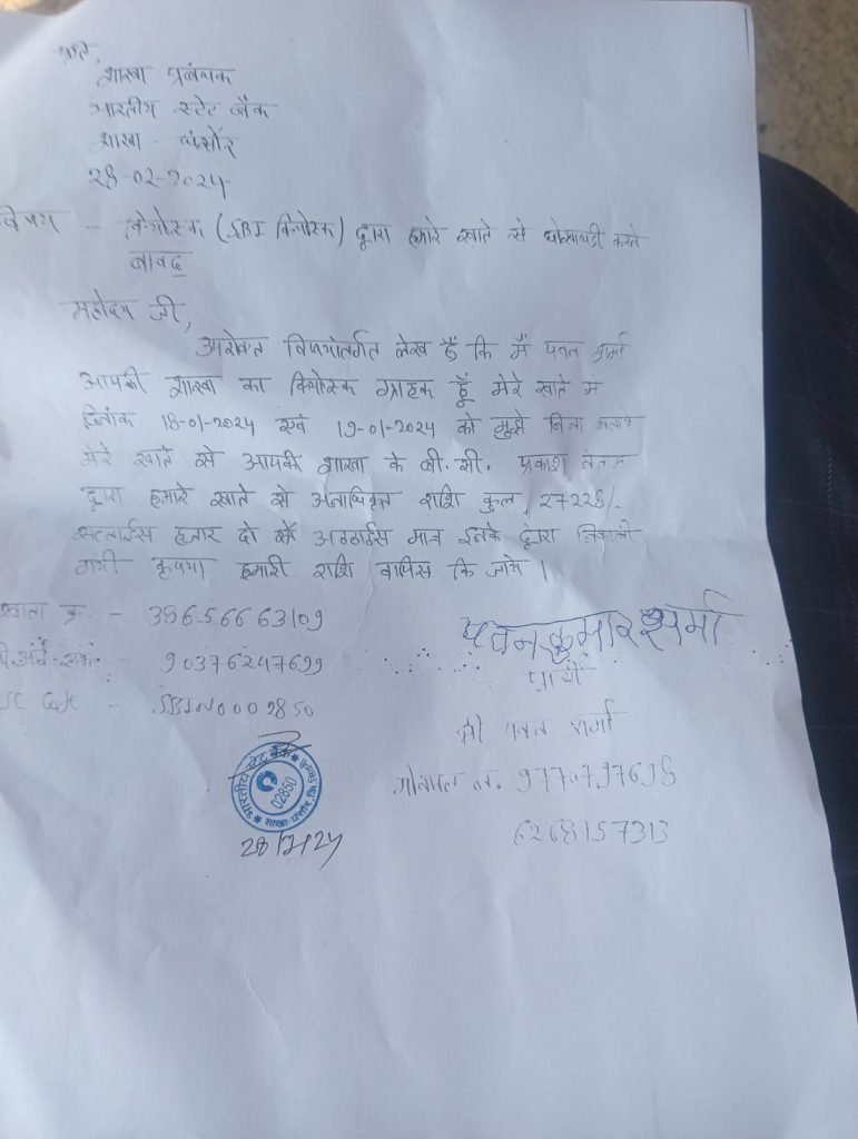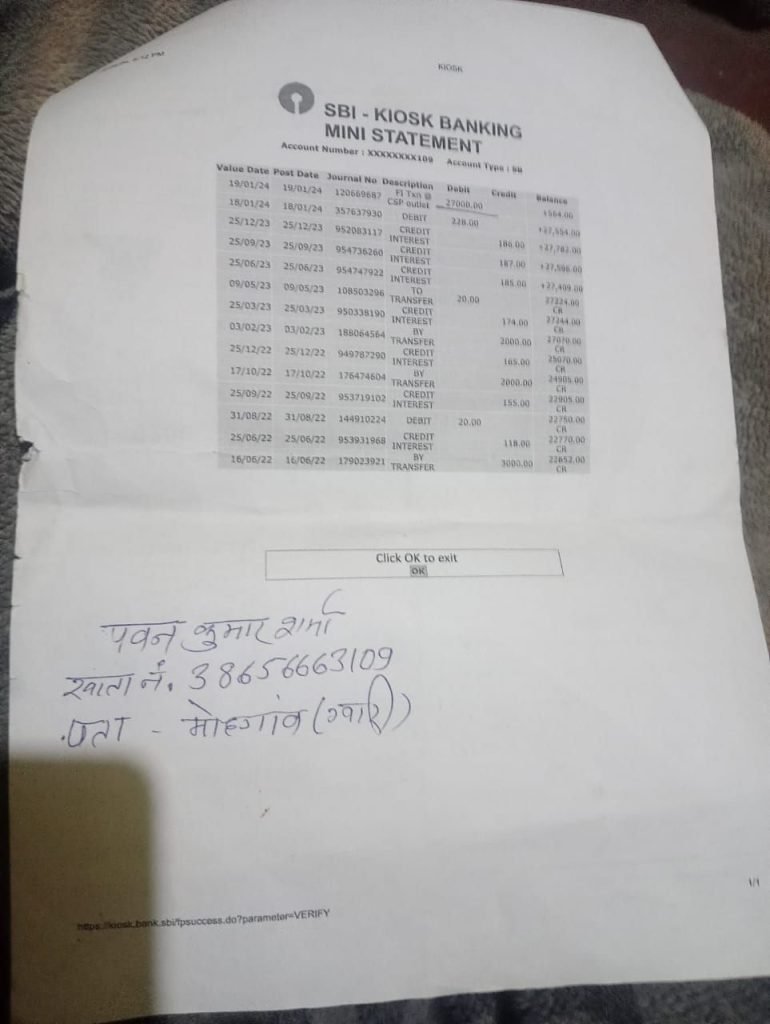 इसी प्रकार पवन शर्मा के अकाउंट से 18 व 19 जनवरी 2024 को बिना बताए 27228 रुपए निकाल लिया। पीड़ित ने इस मामले की लिखित शिकायत भारतीय स्टेट बैंक शाखा घंसौर के शाखा प्रबंधक को भी कर दी है, वहीं उन्होंने इस प्रकार की फर्जीवाड़ा धोखाधड़ी करने वाले ऐसे कियोक्स आईडी को पूरी तरह बंद किए जाने की भी मांग की है। साथ ही उन्होंने अपने पूरे रुपए दिए दिलाए जाने की मांग अधिकारियों से करते हुए इस कार्य में लापरवाही बरतने वालों के खिलाफ सख्त कार्यवाही किए जाने की मांग भी की है।