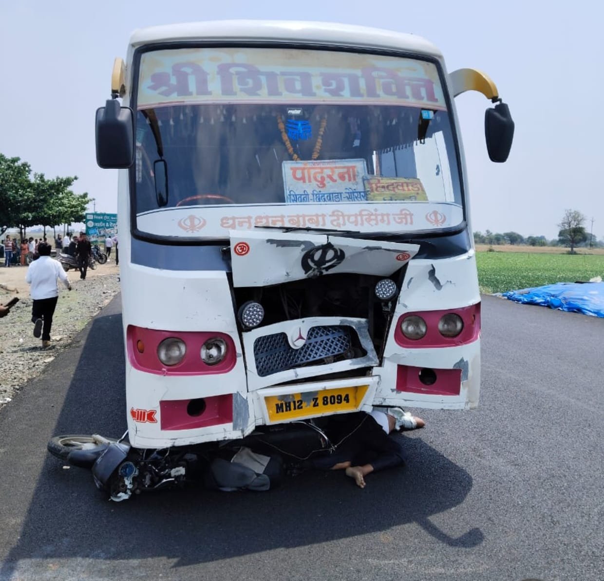 प्राप्त जानकारी के अनुसार जैतपुरखुर्द (जाम) निवासी टूटू सनोडिया (45) पत्नी सरोज सनोडिया (40) व 23 वर्षीय पुत्र रोहित सनोडिया बाइक क्रमांक MH 49 AC 0598 से मिडवे ट्रीट में आयोजित शादी समारोह में शामिल होने जा रहे थे। बाइक पुत्र रोहित चल रहा था जब उनकी बाइक मिडवे ट्रीट के सामने पहुंची तभी वहां से गुजर रही श्री शिव शक्ति बस पांढुर्णा सिवनी छिंदवाड़ा बस क्रमांक एमएच 12 Z 8094 से जोरदार टक्कर हो गई।साथ ही बस के नीचे बाइक बुरी तरह फस गई।