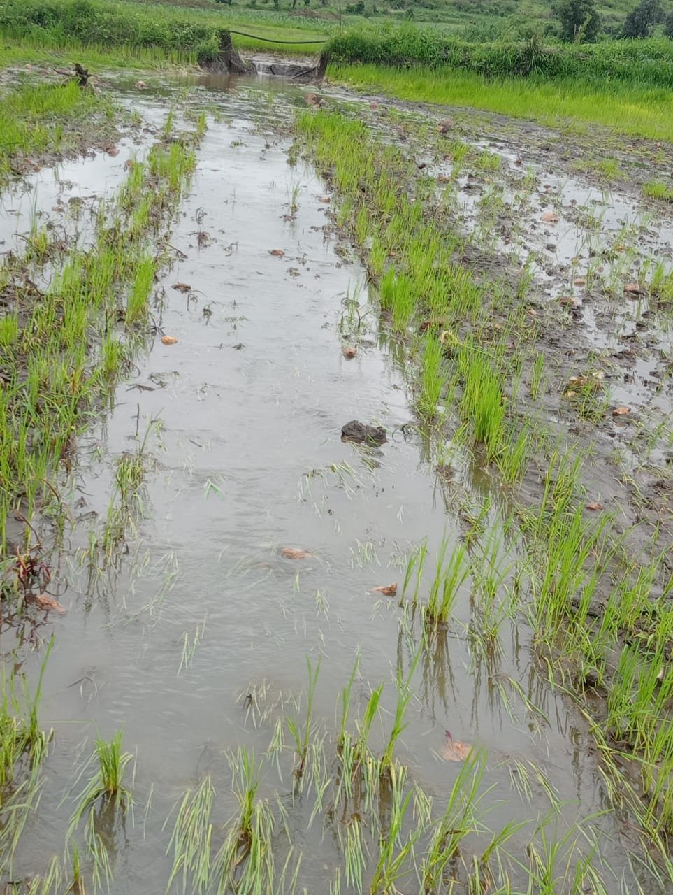 विकासखंड घंसौर के अंतर्गत गांव ग्वारी निवासी किसान राधेश्याम शर्मा ने बताया कि उनके खेत में लगी मक्के की फसल को काफी नुकसान हुआ है। बारिश का पानी अत्यधिक तेज प्रवाह के साथ खेतों, बंधिया से होकर निकला जिससे बंधिया की मेड भी टूट गई। व खेत में लगी मक्के की फसल जमीन पर बिछ गई। साथ ही धान का परहा जो की हाल ही में खेतों में लगाया गया था वह बह गया।