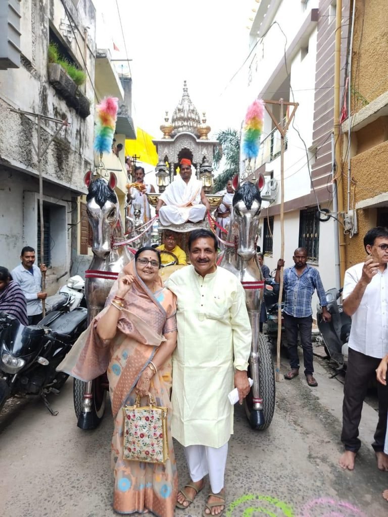 सार्थी के रूप रजत अश्व जिनेन्द्र रथ मे कुन्थुगिरि महाराष्ट्र से दशलक्षण महापर्व के अवसर पर दस धर्मो पर उद्बोधन प्रधान करने पधारे आगंतुक विद्वान पण्डित श्री निशांत जी शास्त्री आसीन हुये। श्री जी के आजू बाजू मे दो चमर धारी। रजत रथ के पीछे उपवास करने वाले श्रद्धालुओ की गाड़ी भी आकर्षण केंद्र रही। शोभायात्रा का स्वागत समाज के प्रत्येक घरो घर किया गया।