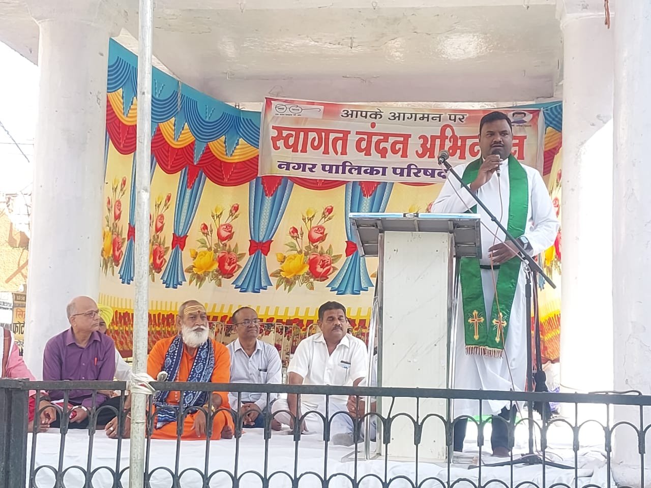 जिसमे जैन समाज के प्रतिनिधि के रूप नगर के विद्वान श्री धन्य कुमार जी दिवाकर ने प्रार्थना के रूप मे णमोकार मंत्र, मंगलाचरण, भक्तामर के श्लोक व मेरी भावना का पाठ किया। कार्यक्रम के अंत मे नगर पालिका द्वारा सभी धर्मो के प्रतिनिधिओ का साल व श्री फल से सम्मान किया गया।