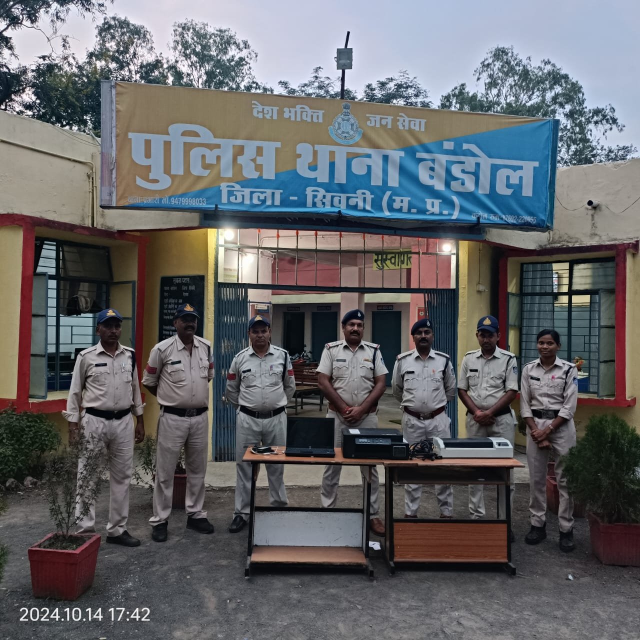 गिरफ्तार आरोपीः निवेश कुमार सुपले पिता खूबचंद सुपले उम्र 26 साल निवासी ग्राम कामता थाना कान्हीबाडा। जप्तीः- इन्टेल कम्पनी का एक लेपटाप, ब्रदर कम्पनी की प्रिन्टर मशीन, लेमीनेशन मशीन,