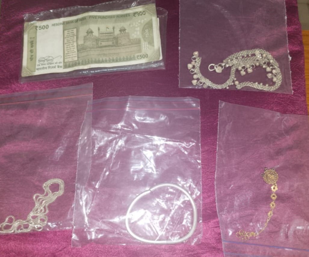 नाम आरोपी :- नरेन्द्र निवारे पिता लक्ष्मण निवारे उम्र 23 साल निवासी टपरा मोहल्ला सिवनी जप्ती मसरूका :- 01 एक सोने की झुमकी, 02 एक चांदी की चैन 03 एक चांदी का कडा 04 एक जोड चांदी की पायल 05 नगदी 6000 रूपये