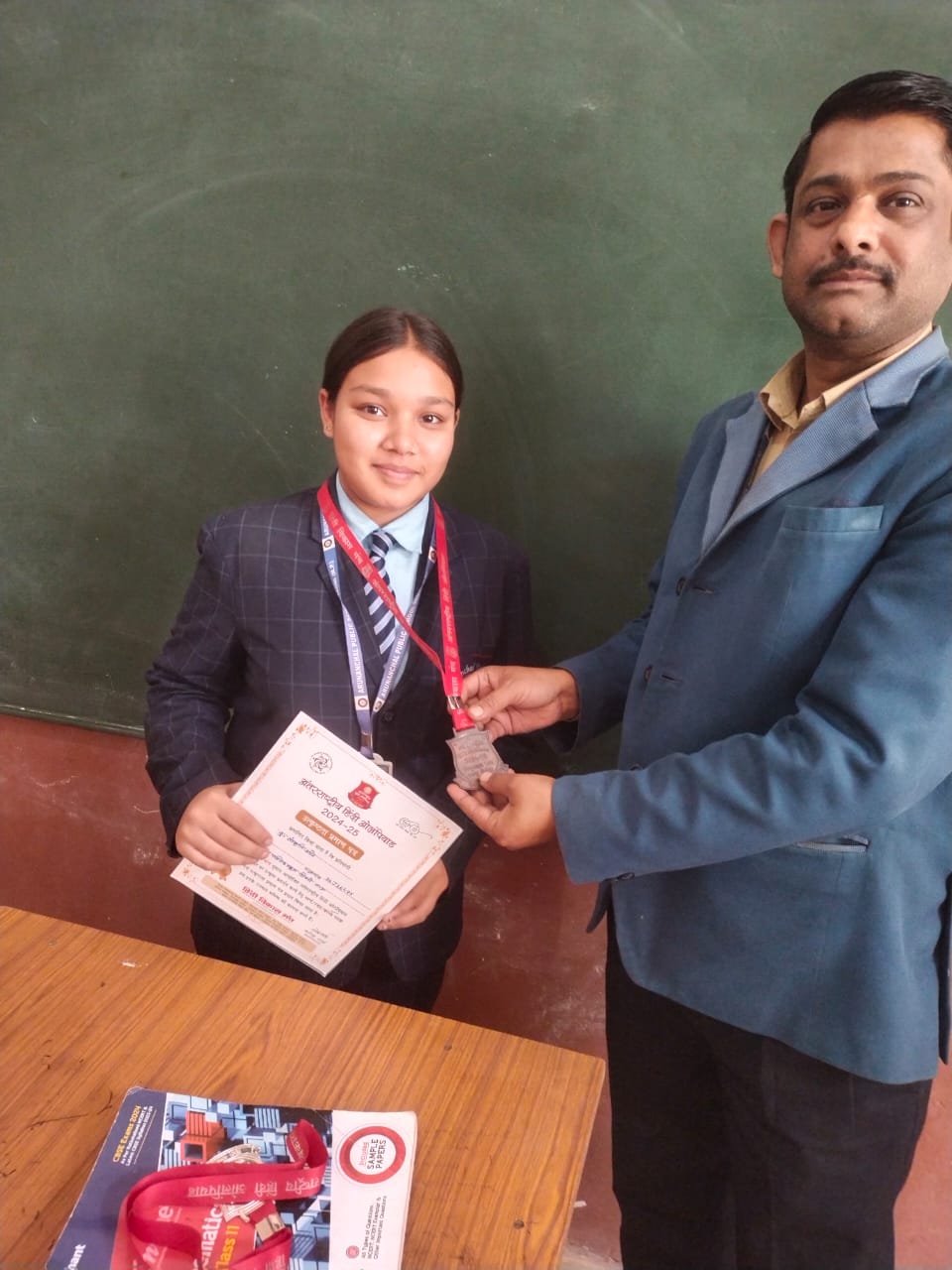 सिवनी। अरुणांचल पब्लिक स्कूल सिवनी में कक्षा 10 वीं में अध्ययनरत जिले के पत्रकार पृथ्वीराज जगने की बेटी कु.संस्कृति जगने ने अंतरराष्ट्रीय हिंदी ओलम्पियाड 2024-25 में आयोजित परीक्षा में कांस्य पदक जीतकर अपने स्कूल और अपने परिवार का नाम रोशन किया है।