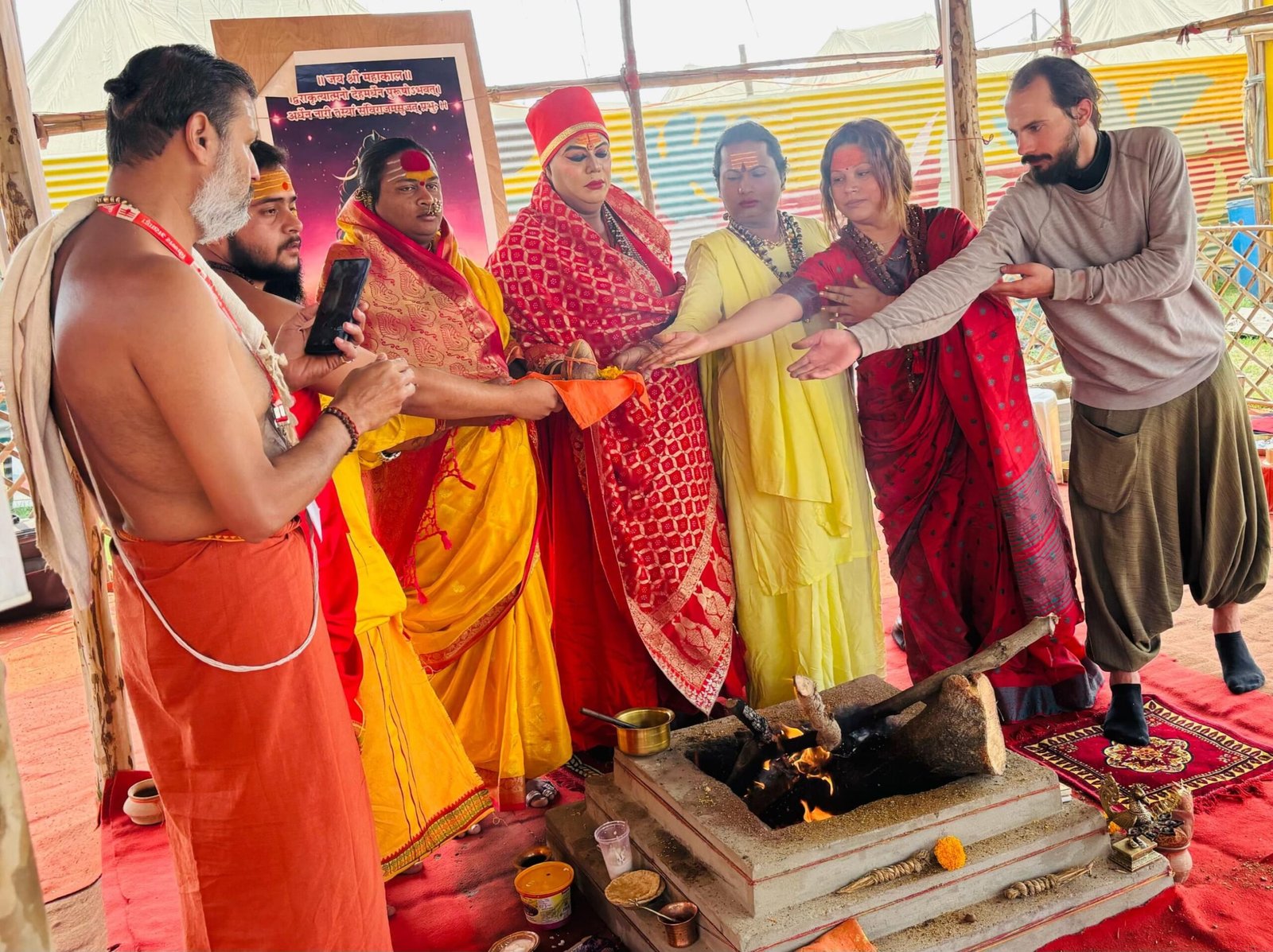 श्री श्री किन्नर अखाड़ा परिसर संगम लोवर मार्ग सेक्टर-16 मेला श्रेत्र प्रयागराज में आयोजित महायज्ञ की पूर्णाहूति के दौरान श्री श्री अंतर्राष्ट्रीय किन्नर अखाड़ा के संस्थापक श्री दुर्गादास महाराज, महामण्डलेश्वर किन्नर अखाड़ा आचार्य डॉ. लक्ष्मीनारायण त्रिपाठी, महाण्डलेश्वर किन्नर अखाड़ा श्री श्री 1008 मां पवित्रानंद गिरी, महामण्डलेश्वर दुलिया महाराष्ट्र मां पार्वतिनंद गिरी, महामण्डलेश्वर कामाख्यापीठ आसाम मां गायत्रीनंद गिरी सहित बड़ी संख्या में किन्नर मौजूद रहे।