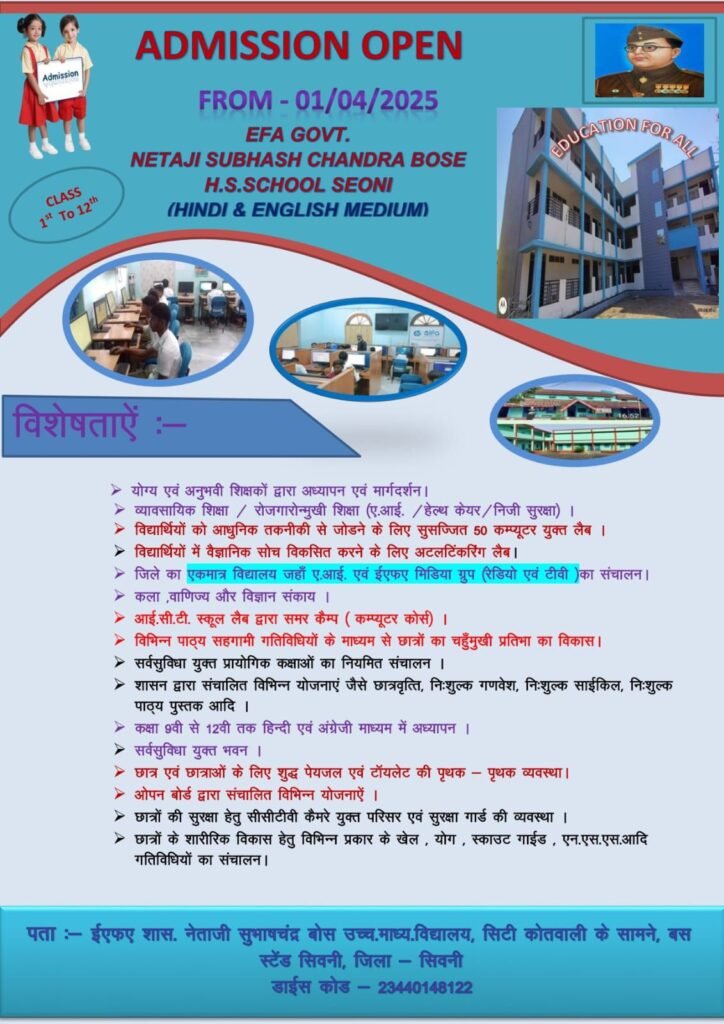 सिवनी। नगर के हृदय स्थल में स्थित ई एफ ए शासकीय नेताजी सुभाष चंद्र बोस उच्चतर माध्यमिक विद्यालय में नगर के गणमान्य नागरिक राष्ट्रपति पुरस्कार प्राप्त शिक्षक श्री छीददी लाल जी श्रीवास, विद्यालय के पूर्व छात्र आर पी कोहुरू शिक्षा विद एवं सेवानिवृत शिक्षिका श्रीमती सुधारानी श्रीवास्तव की उपस्थिति में समस्त विद्यालय परिवार द्वारा छात्र-छात्राओं को तिलक ,पुष्पों, मिष्ठान से स्वागत कर विद्यालय में प्रवेश कराया गया।