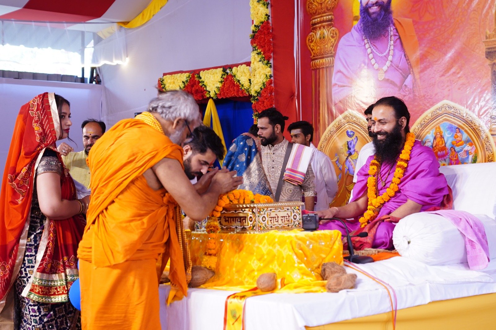 साथ ही आज की कथा में ब्रह्मचारी श्री ब्रह्मविद्यानन्द जी पहुंचे एवं आपने आशीर्वाद देते हुए अपने आशीर्वचन देते हुए कहा कि जीवन में उन क्षणों को बहुत भाग्यशाली माना गया है, इस जीवन रूपी यात्रा में हम अध्यात्म की यात्रा करते हैं अध्यात्म की यात्रा क्या है जीवन को यात्रा कहा गया है जो कि जन्म से लेकर मरण तक की यात्रा है । अध्यात्म की यात्रा हमारे अंदर की यात्रा है जो कि अंत: करण के माध्यम से उस यात्रा को किया जाता है । हमारी अध्यात्म की यात्रा है वो हमें वास्तविक घर की प्राप्ति कराता है। और वास्तविक घर हमारा क्या है । भगवान्! जो शरणय है उनकी शरण हमें प्राप्त करना चाहिए ।