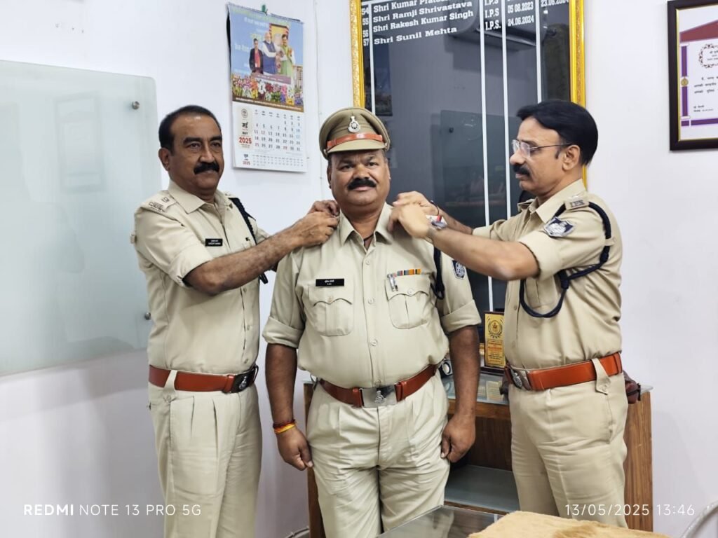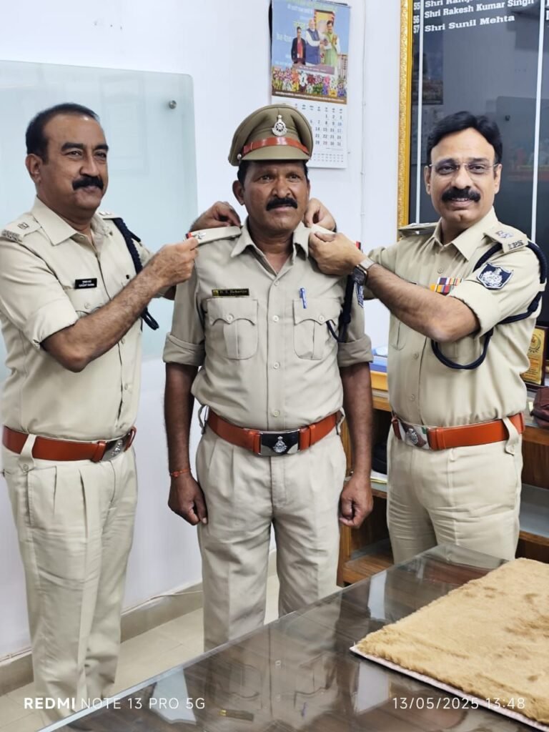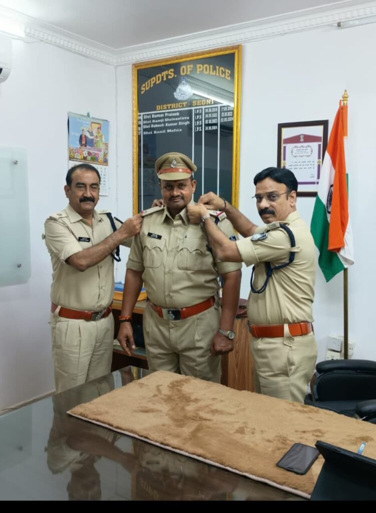सिवनी। पुलिस अधीक्षक कार्यालय में पुलिस अधीक्षक सुनील मेहता एवं अतिरिक्त पुलिस अधीक्षक गुरुदत्त शर्मा द्वारा मंगलवार को प्रधान आरक्षक से सहायक उप निरीक्षक के पद पर पदोन्नत किया गया।