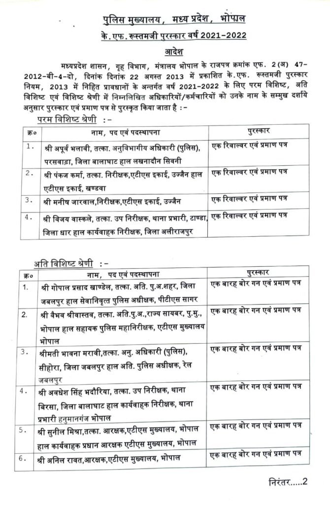 सिवनी। अनुविभागीय अधिकारी (पुलिस) लखनादौन श्री अपूर्व भलावी द्वारा जिला बालाघाट में माओवादियों के विरुद्ध चलाए गए ऑपरेशन में महत्वपूर्ण भूमिका अदा करने के फल स्वरुप खटिया मोर्चा दलम के सक्रिय माओवादी संदीप कुंजम (इनामी 14 लाख) को गिरफ्तार करने में सफलता प्राप्त हुई थी। इस उत्कृष्ट कार्य हेतु एसडीओपी लखनादौन को के.एफ.रुस्तम जी पुरस्कार (एक रिवाल्वर एवं प्रमाण पत्र) मध्य प्रदेश शासन द्वारा पुरस्कृत किया जायेगा।