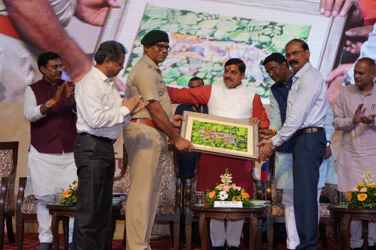 सिवनी। अंतरराष्ट्रीय बाघ दिवस के अवसर पर वन विभाग के ओर से मुख्यमंत्री को जो स्मृति चिन्ह प्रदान किया गया। वह ड्राइंग शीट पर जल रंगों से बनी एक बाघ की पेंटिंग थी। यह पेंटिंग दक्षिण सिवनी सामान्य वन मंडल में पदस्थ वनरक्षक रोहित शुक्ला ने बनाई।