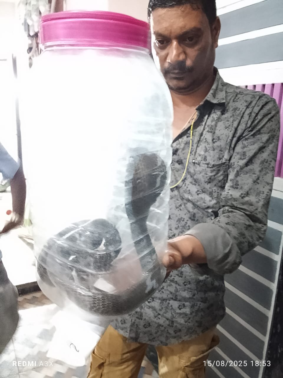 सर्प मित्र प्रवीण तिवारी द्वारा बचाव कर लिया गया इसकी जानकारी हिमांशु तिवारी, अनिल दुबे, आकाशदीप ठाकुर और कॉलोनी वासियों द्वारा दी गई।