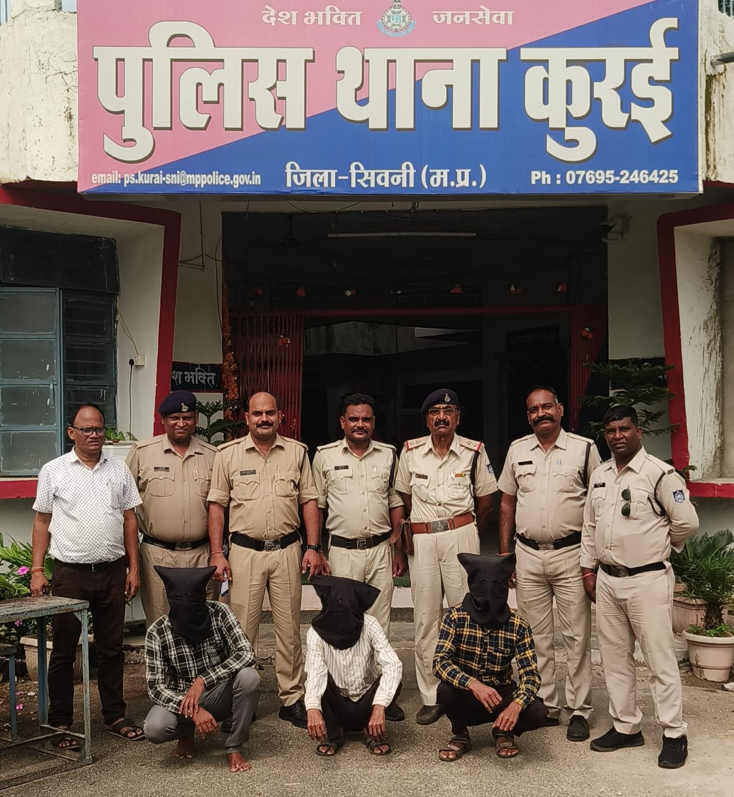 उल्लेखनीय भूमिका – निरी. के. एस. तेकाम थाना प्रभारी कुरई, उप.निरी. अजय जायसवाल, सउनि शैलेन्द्र डोंगरे, भूपेन्द्र सिंह नागेश्वर, अजय सिंह परिहार, प्र.आर. संतोष धुर्वे, महेन्द्र परतेती, मनोज गोहिया राजेश माथरे, आर. आविनाश पाण्डेय, चंचलेश नरवरे, यशपाल उइके।