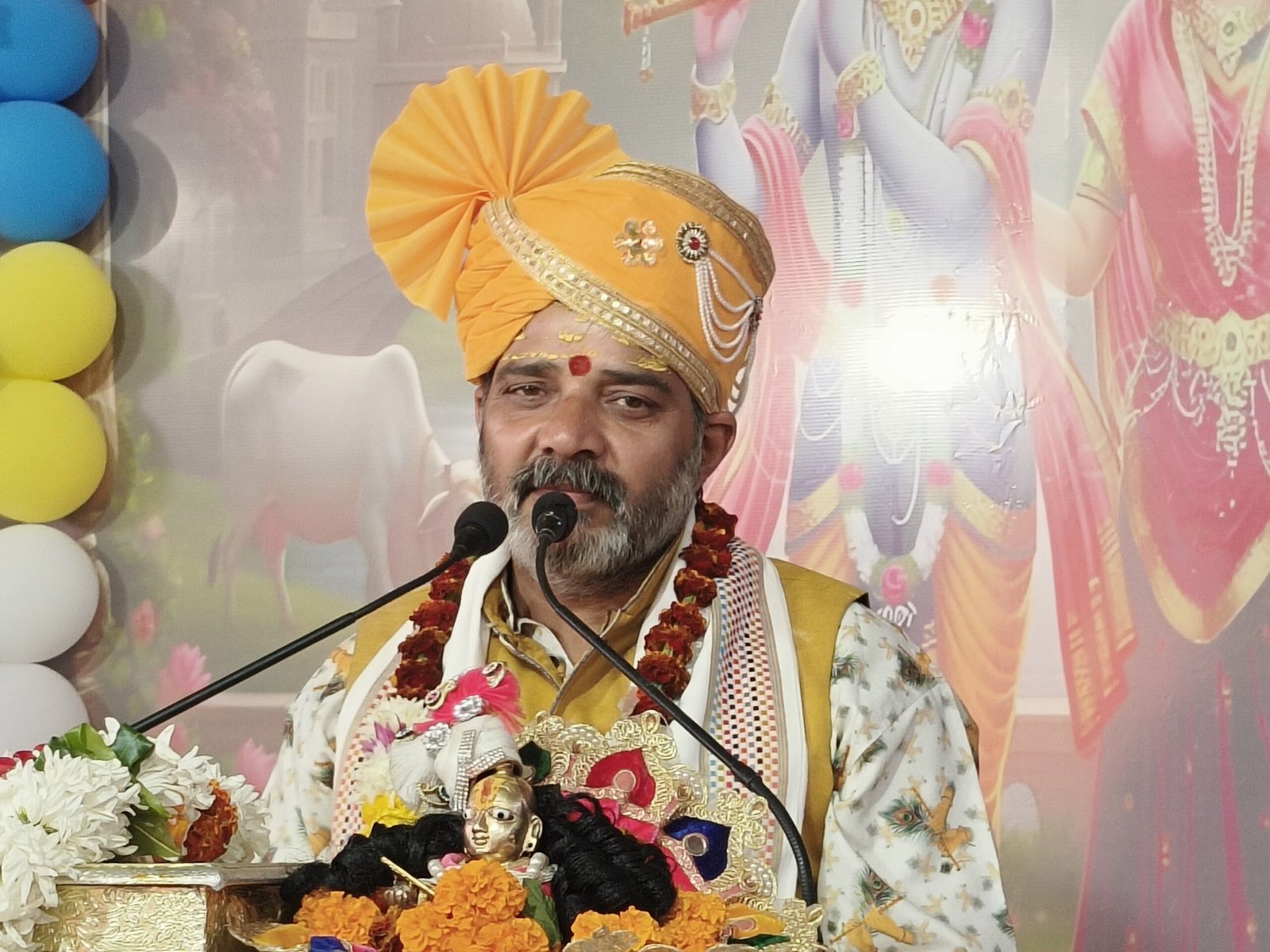उन्होंने आगे कहा कि नंदालय में गोपियों का तांता लगा रहता है। हर गोपी भगवान से प्रार्थना करती है कि किसी न किसी बहाने कन्हैया मेरे घर पधारें। भगवान की महारास लीला इतनी दिव्य है कि स्वयं भोलेनाथ उनके बाल रूप के दर्शन करने के लिए गोकुल पहुंच गए। मथुरा गमन प्रसंग में अक्रूर जी भगवान को लेने आए। जब भगवान श्रीकृष्ण मथुरा जाने लगे समस्त ब्रज की गोपियां भगवान कृष्ण के रथ के आगे खड़ी हो गई। कहने लगी हे कन्हैया जब आपको हमें छोड़कर ही जाना था तो हम से प्रेम क्यों किया। श्री कृष्ण एवं रुकमणी विवाह उत्सव पर मनोहर झांकी प्रस्तुत की गई। भगवान श्री कृष्ण रुकमणी जी के समस्त श्रद्धालु ने बारात व शादी का आंनद लिया।