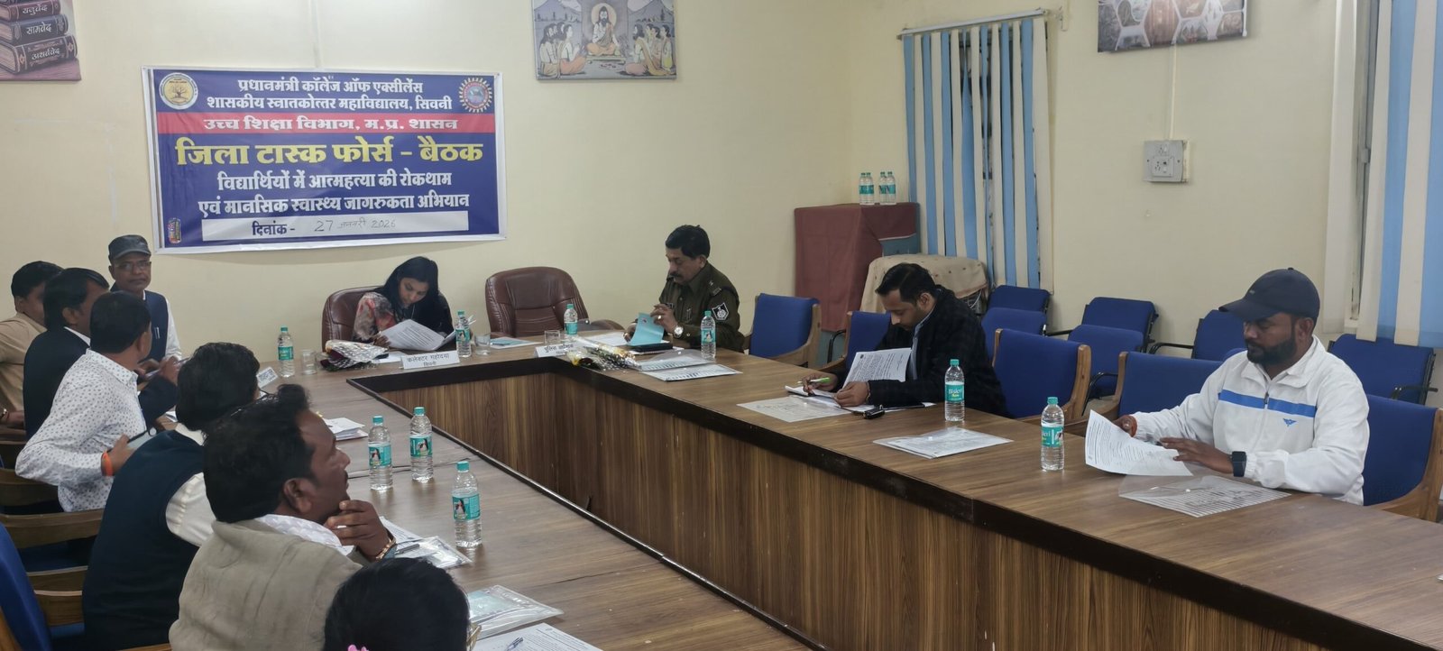 सिवनी। देश के शैक्षणिक संस्थानों में छात्रों की बढ़ती आत्महत्या की गंभीर स्थिति पर माननीय सर्वोच्च न्यायालय के निर्देश के अनुपालन में मध्यप्रदेश शासन, उच्च शिक्षा विभाग के सभी शासकीय और प्राइवेट काॅलेजों में राष्ट्रीय टास्क फोर्स (NTF) इकाइयों का गठन किया जाना है. इसी अनुक्रम में, जिला कलेक्टर की अध्यक्षता में प्रधानमंत्री कॉलेज ऑफ़ एक्सीलेंस में राष्ट्रीय टास्क फोर्स (एनटीएफ) की जिला इकाई का गठन किया गया।