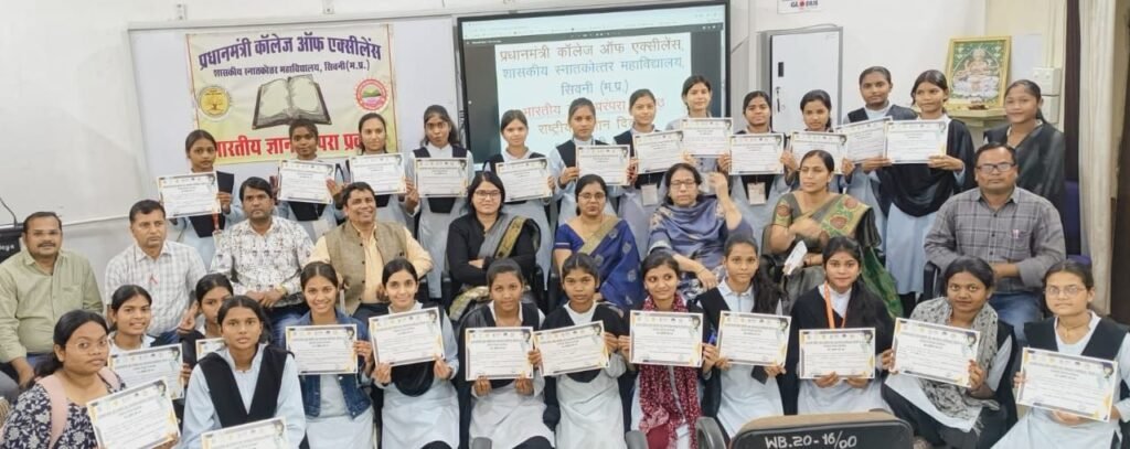सिवनी। राष्ट्रीय विज्ञान दिवस के अवसर पर प्रधानमंत्री कॉलेज ऑफ़ एक्सीलेंस में वैज्ञानिक जागरूकता कार्यक्रम का आयोजन किया गया। भारतीय ज्ञान परंपरा प्रकोष्ठ द्वारा आयोजित इस कार्यक्रम में छात्र-छात्राओं ने विज्ञान के मॉडल बनाए, प्रश्नमंच प्रतियोगिता में हिस्सा लिया और विद्वान वक्ताओं के व्याख्यान के माध्यम से विज्ञान के महत्व को समझा ।