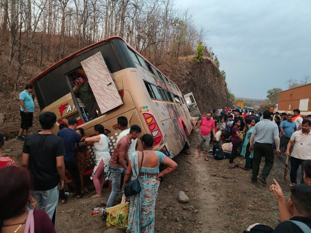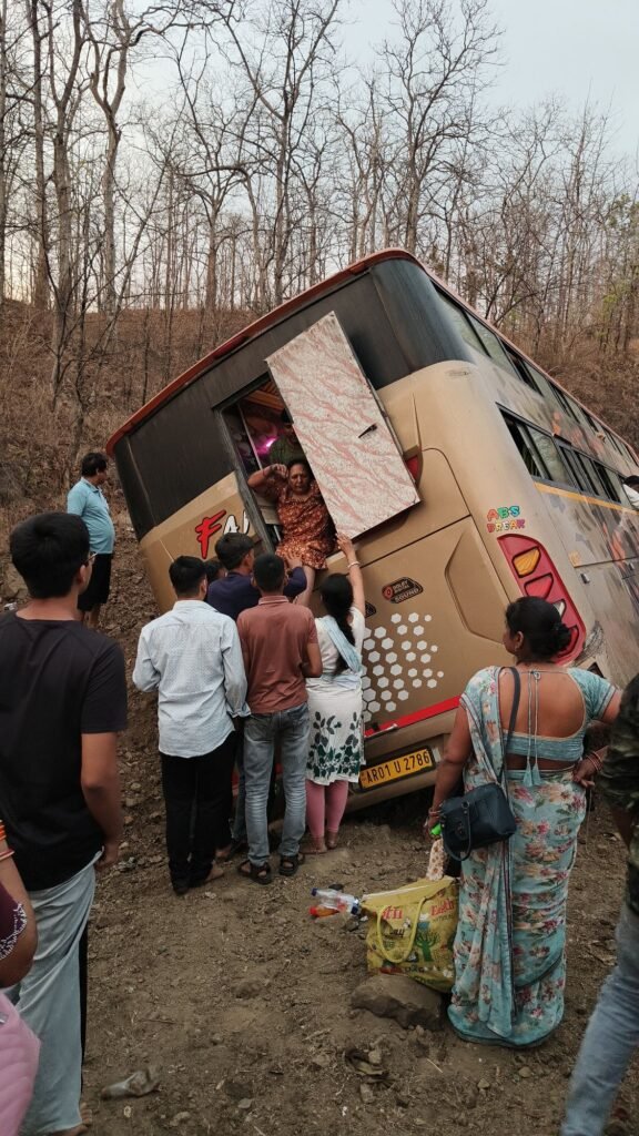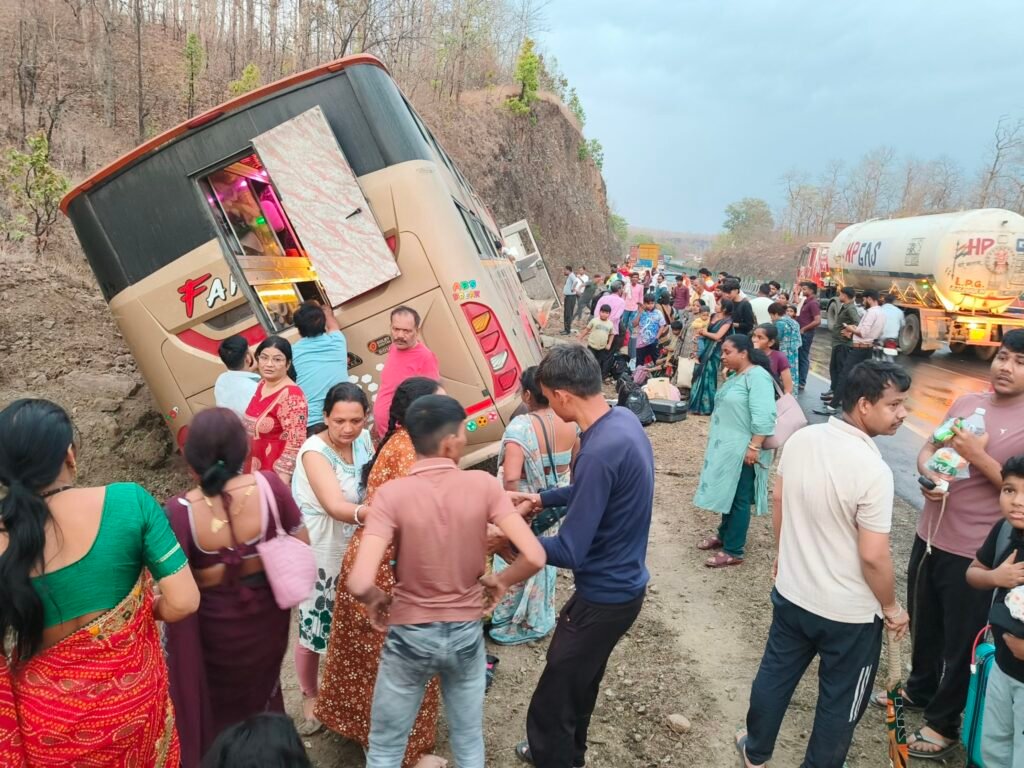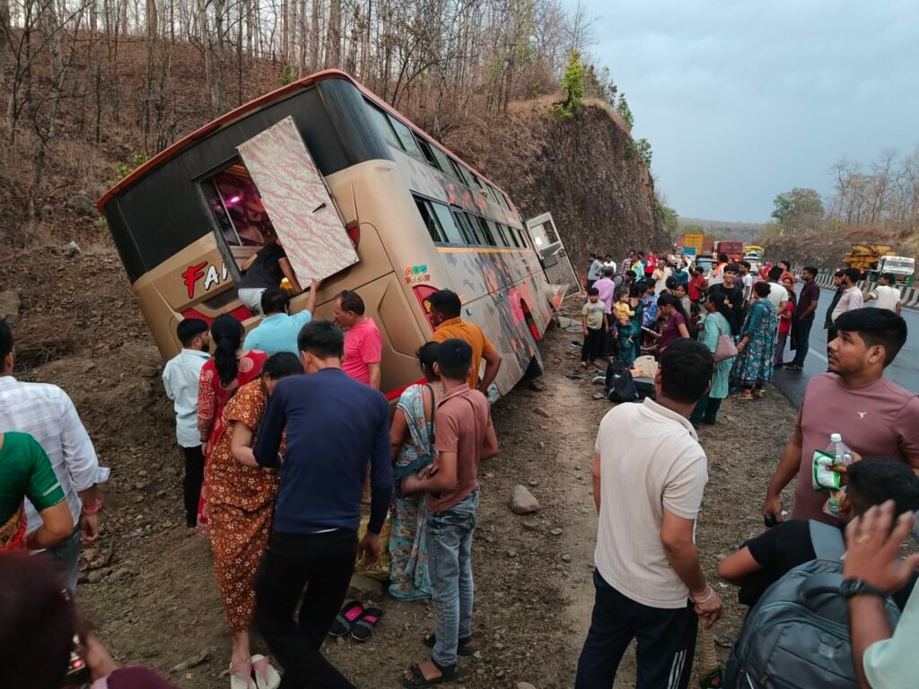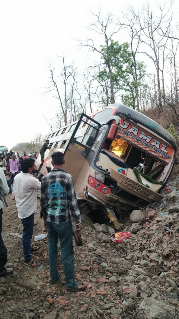 सिवनी। सिवनी से जबलपुर दिशा की ओर जा रही यात्री बस गुरुवार की शाम लगभग 6:15 बजे छपारा से आगे छपारा बंजारी माता मंदिर के बाईपास स्थित पहाड़ी के किनारे गहरी खाई में बस जा घुसी। अनियंत्रित बस गहरी खाई में घुसते ही बस में सवार यात्रियों में चीख पुकार मच गई। बस में सवार लगभग 6 लोगों को चोटे आई।